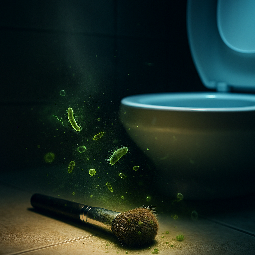 Using a dirty makeup brush daily is like applying an invisible layer of bacteria to your skin. Studies show some of the same germs found on makeup brushes can also be found in PUBLIC TOILETS.